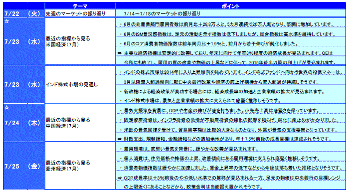 【ウィークリー No.320】先週のマーケットの振り返り(2014/7/21-7/25)