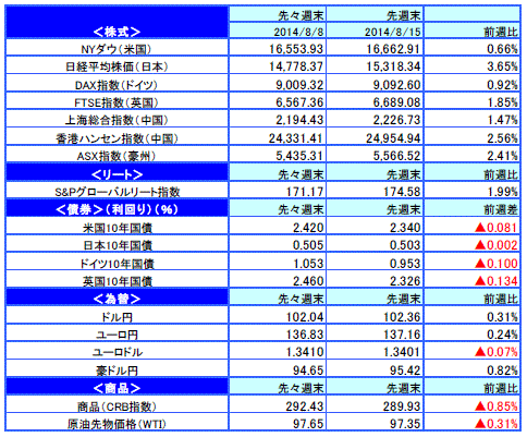 先週のマーケットの振り返り(2014/8/11-8/15)【ウィークリー】