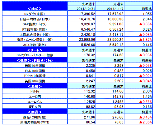 先週のマーケットの振り返り(2014/11/3-11/7)【ウィークリー】