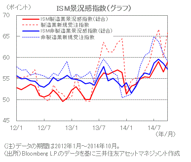 ☆11/6【米国のISM景況感指数(2014年10月)】製造業と非製造業とで異なる動き