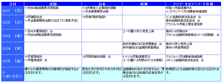 ドイツ国債は利回りが低下しました。ECB総裁発言や前月を下回った11月の消費者物価上昇率(速報値)などから、ECBが金融緩和を強化するとの期待が高まったことがその要因です。