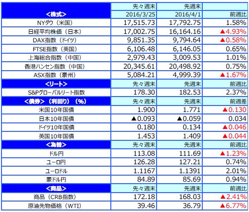 先週のマーケットの振り返り(2016/3/28-4/1)【ウィークリー】