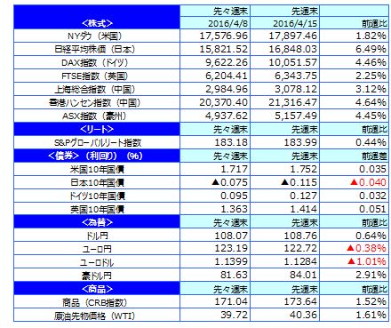 先週のマーケットの振り返り(2016/4/11-4/15)【ウィークリー】