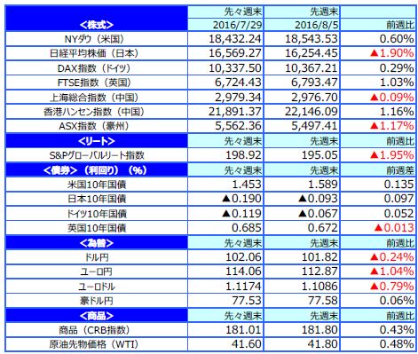 先週のマーケットの振り返り(2016/8/1-8/5)【ウィークリー】