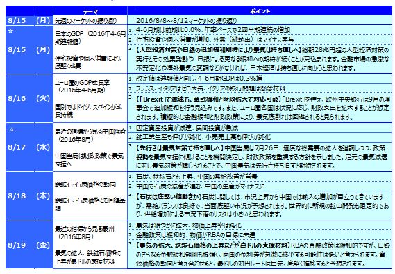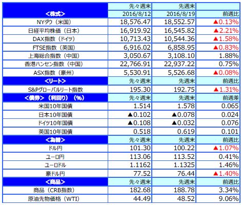 ホームマーケット週次・月次市場情報先週のマーケットの振り返り(2016/8/15-8/19)【ウィークリー】/マーケット情報・レポート - 三井住友DSアセットマネジメント