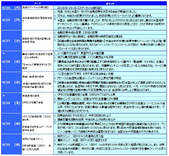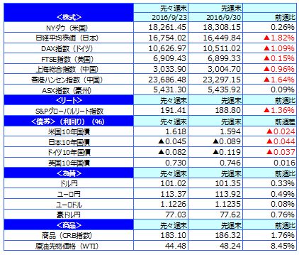 ホームマーケット週次・月次市場情報先週のマーケットの振り返り(2016/9/26-9/30)【ウィークリー】/マーケット情報・レポート - 三井住友DSアセットマネジメント