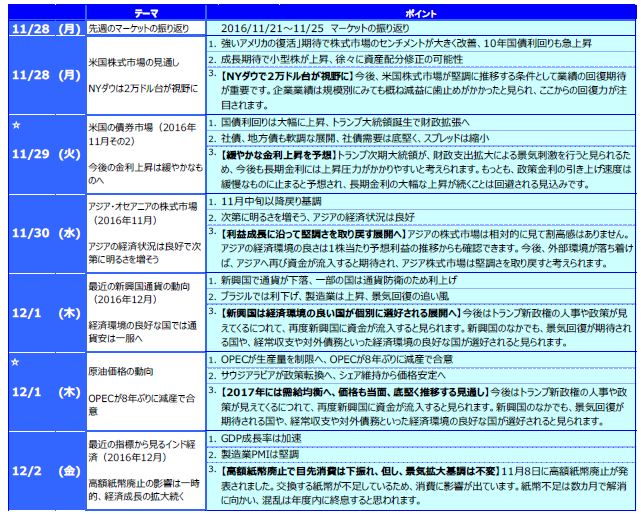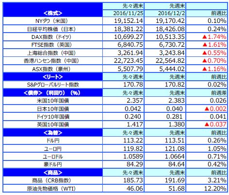 ホームマーケット週次・月次市場情報先週のマーケットの振り返り(2016/11/28-12/2)【ウィークリー】/マーケット情報・レポート - 三井住友DSアセットマネジメント