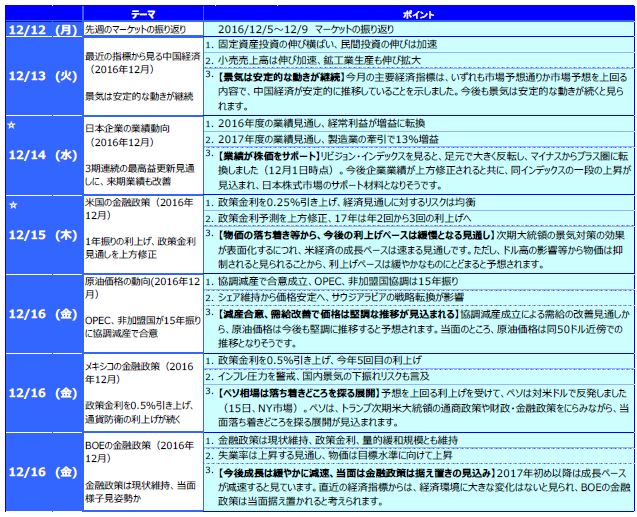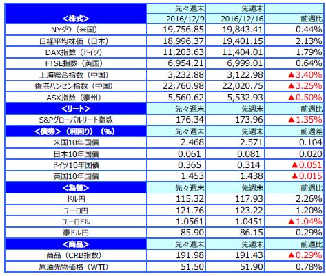 ホームマーケット週次・月次市場情報先週のマーケットの振り返り(2016/12/12-12/16)【ウィークリー】/マーケット情報・レポート - 三井住友DSアセットマネジメント