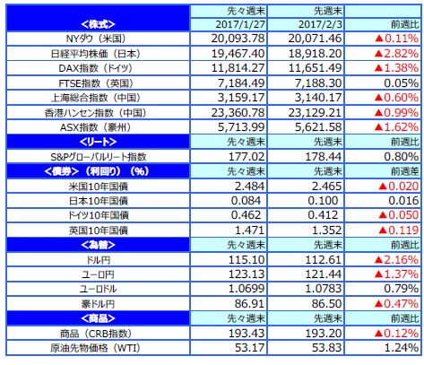 先週のマーケットの振り返り(2017/1/30-2/3)【ウィークリー】