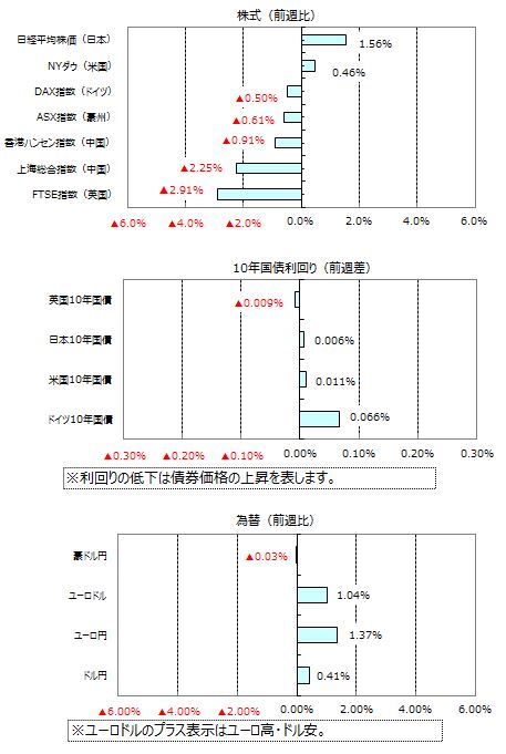 米国や日本では、地政学リスクへの警戒感がやや後退したものの、英国の総選挙前倒しなどの材料もあり、週を通してみると概ね横這いで引けました。ドイツでは、4月23日に行われるフランスの第1回大統領選挙に向けて金利がかなり低下していたこともあり、選挙前にポジション調整の売りが出た模様で、長期金利は上昇しました。