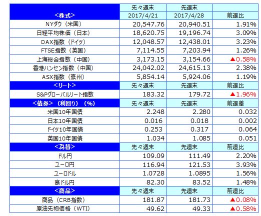 先週のマーケットの振り返り(2017/4/24-4/28)【ウィークリー】