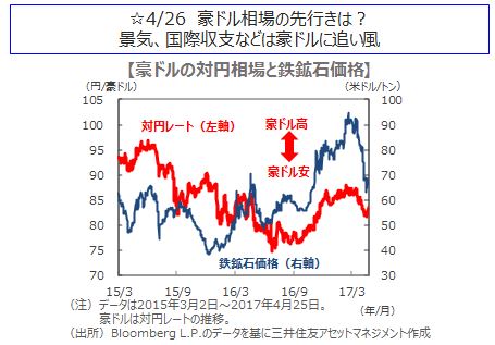 米国や欧州では、株式市場と同様に、地政学リスクへの警戒感が後退したことやフランスの第1回大統領選挙の結果で波乱が起きなかったことなどを受けて、リスク資産に資金が流れる中、安全資産である債券は売られ、長期金利は上昇しました。一方、日本では小動きとなりました。