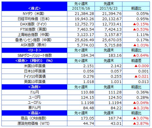 先週のマーケットの振り返り(2017/6/19-6/23)【ウィークリー】