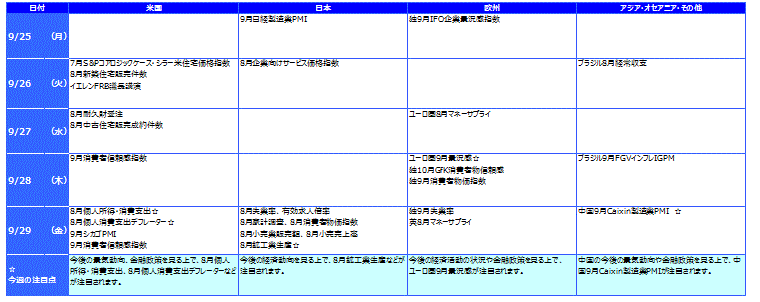 円相場は下落しました。対ドルではFOMCで10月以降の資産縮小開始と年内の利上げの可能性が示唆されたことなどを受けて、週間では1.05%の円安・ドル高となりました。対ユーロでは1.07%の円安・ユーロ高となりました。