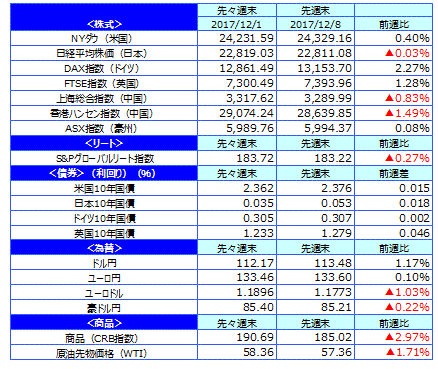 先週のマーケットの振り返り(2017/12/4-12/8)【ウィークリー】