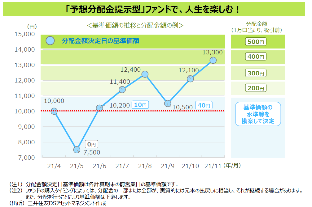※上記は「予想分配⾦提⽰型」ファンドのイメージ図であり、実際の投資成果ではありません。また、将来の成果を⽰唆あるいは保証するものでもありません。
