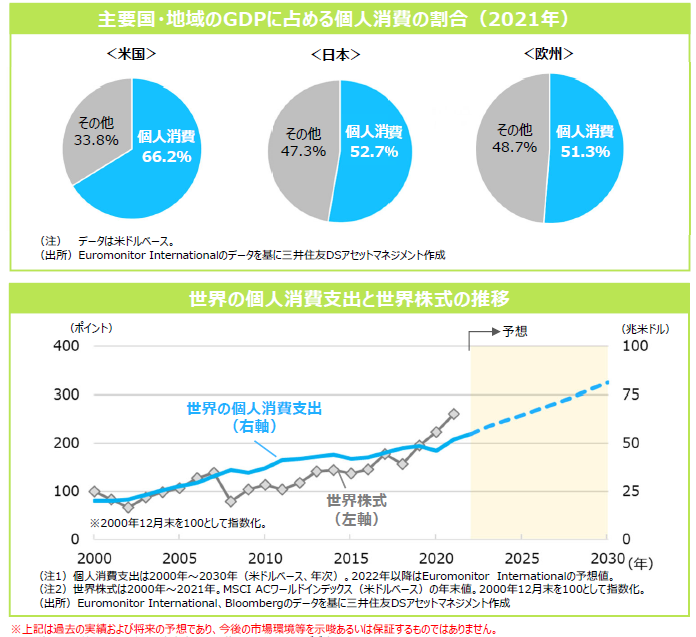 経済活動の中でも、 個人消費は重要な要素であり 、 各国 ・ 地域の GDP においても 、 大きな割合を占めています 。