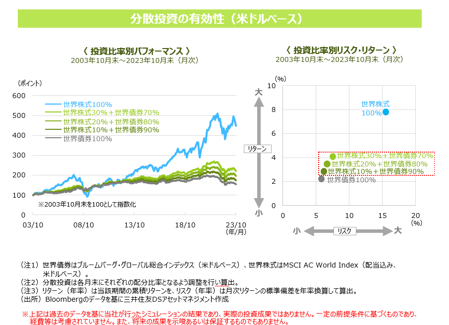 【Vol.184】「世界債券」のみの資産運用に「世界株式」 を加えた場合のパフォーマンスは?