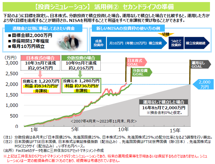 人生100年時代、結婚、出産、マイホーム購入、セカンドライフなど、様々なライフイベントがあります。それぞれのライフイベントに合わせて、目標や期間を設定し、その実現へ向けて新しいNISAを活用してみてはいかがでしょうか。