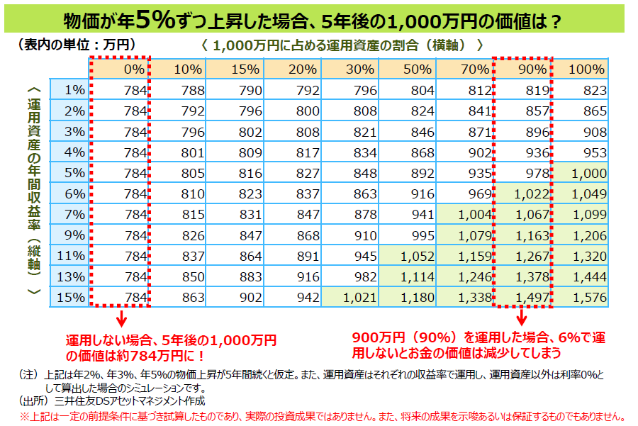 対処方法の一つに資産運用があります。お金の価値を維持するために、金融資産に占める「運用資産の割合」と「必要な利回り」を考えていきましょう。