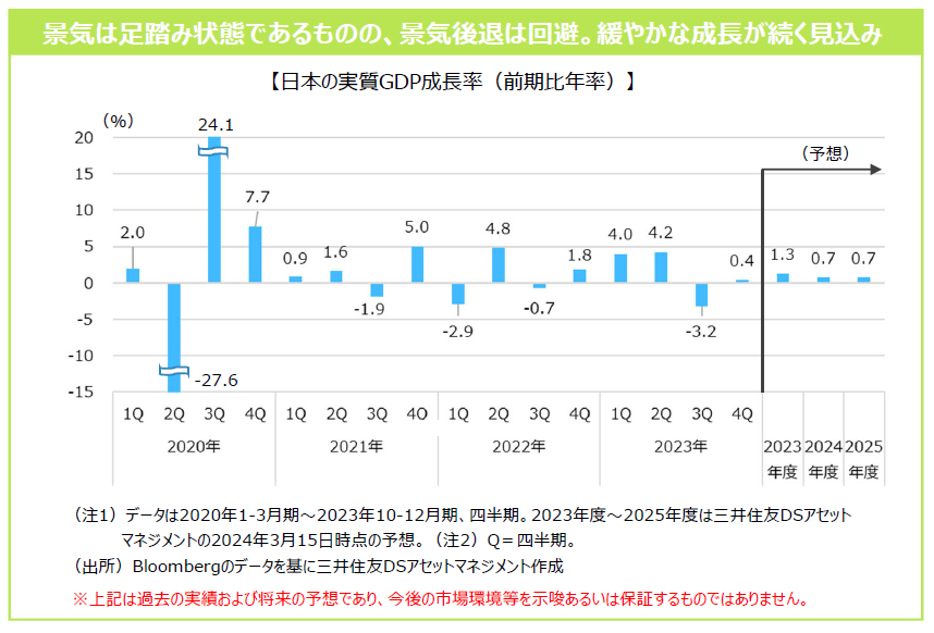 ◆当社の見通しでは、実質GDP成長率は2023年度は前年度比+1.3%となっており、2024年度は同+0.7%、2025年度は同+0.7%と2023年度からやや減速するものの、緩やかな景気拡大が続くと見込んでいます。3月の春闘では約30年ぶりの大幅な賃上げとなり、日銀はマイナス金利政策を解除して、約17年ぶりの利上げに踏み切るなど、金融政策の正常化が進められています。企業の設備投資への意欲は堅調なことなどから、今後も緩やかな景気拡大が期待されます。