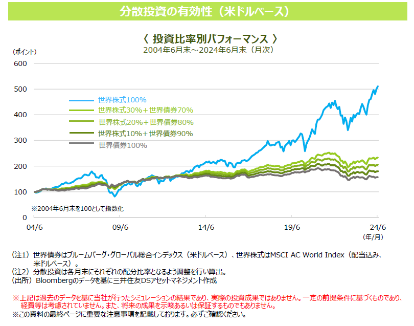 【Vol.213】「世界債券」のみの資産運⽤に、「世界株式」を加えた場合のパフォーマンスは︖