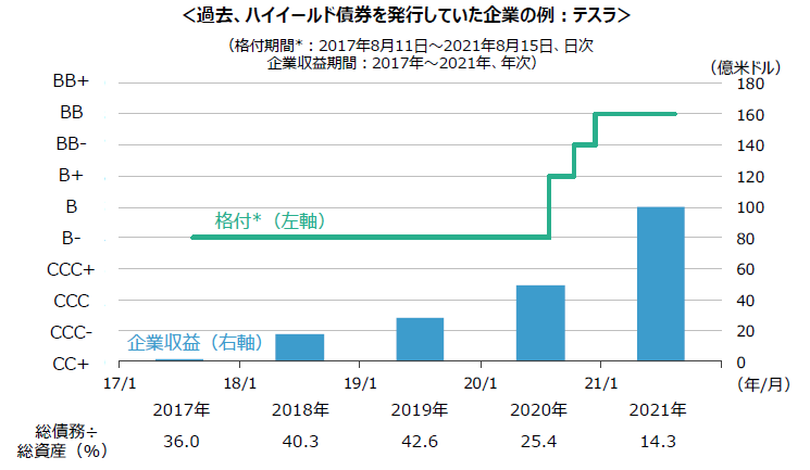 ◆過去、ハイイールド債券を発⾏していた企業の例として、電気⾃動⾞(EV)で広く知られるテスラをご紹介します。