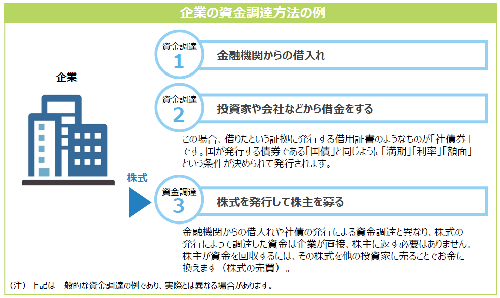企業が事業活動を行うための資⾦を集める「資⾦調達」の⼿段として発行する証券のことです。