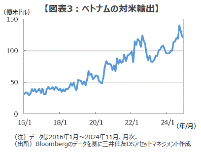 ■こうした反省点を踏まえて第二次トランプ政権下では、中国による迂回輸出の拠点とされるカナダ、メキシコ、東南アジアに対して網羅的に相互関税を課すことで、中国包囲網を構築しようとしているように見受けられます。そして、メキシコやベトナムといった国々が、米国とのディールを通じて対中政策への協力を申し出ているようです。そう考えると、米国の同盟国であり、地政学的にも対中戦略の最前線に位置する日本については、米国による関税政策を過度に心配する必要はないように思われます。