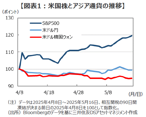 ■というのも、トランプ政権は関税を武器にした対中戦略が大幅な譲歩に追い込まれたことから、次は為替をカードに攻勢に出るのでは、との懸念がくすぶっているからです。市場参加者の間には、米中の関税合戦の過程で対中包囲網の構築に非協力的だった一部の同盟国に対して、「米国が為替による報復に踏み切るのではないか」とのうがった見方もあるようで、そうした「思惑」に市場が身構えているように見受けられます。