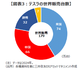 ■テスラの2024年の世界販売台数は約179万台ですが、うち、中国市場での販売台数は米国の約74万台に次ぐ約65.7万台に達します(図表3)。また、同社の上海ギガファクトリーは2023年には年間90万台を超えるEVを生産し、同社最大規模の生産拠点の一つとして重要な輸出拠点ともなっています。