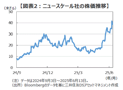 ■こうしたホワイトハウスによる政策転換に市場は敏感な反応を見せています。特に、短工期で低コスト、さらに安全性も高いとされるSMRへの関心は高く、世界で初めてSMRの米原子力規制委員会(NRC)の設計認証を取得したニュースケール社の株価は、ここもと大きく上昇しています(図表2)。