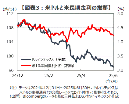 ■ちなみに、26日の日経報道の当日、グラス駐日米大使は「中国からの合成麻薬前駆体の密輸には中国共産党が関与」し、「日米が協力して日本経由での前駆体の密輸を防ごう」と公式アカウントでツイートして、日本側を攻撃するような姿勢は今のところ見られないようです。とはいえ、7月9日の関税発動の猶予期限を目前に、トランプ大統領が、「日米交渉合意の可能性は低い」「関税発動の猶予は考えてない」「日本の相互関税は30~35%」などと発言し、日本を突き放すような姿勢を鮮明にしている点は大いに気掛かりなところです。