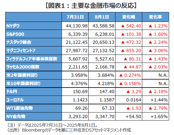 ■特に、FRBについては、①トランプ大統領のパウエル議長に対する批判を今回の雇用統計が裏付けるような結果となってしまったこと、②7月のFOMCでも有力理事2名がパウエル議長に公然と反旗を翻していること、そして、③来年1月退任予定だったクグラーFRB理事の早期退任が決まり、パウエル議長の後任候補が早々に理事に選任される可能性が高まったことから、FRB内部が「ややこしい状況」になってもおかしくないでしょう。