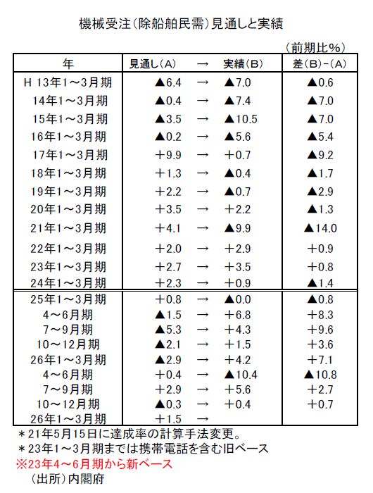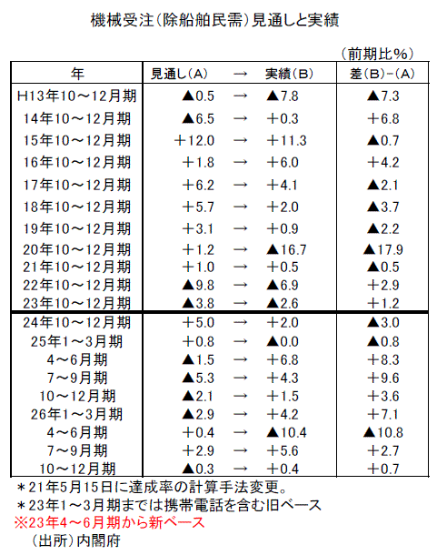 ― 内閣府判断は「機械受注は、緩やかな持ち直しの動きがみられる」に戻る ―