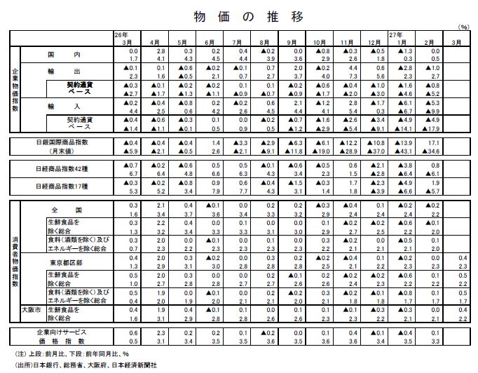 ―エネルギー価格下落等でコア前年同月比+2.0%、増税除くベースでゼロに―