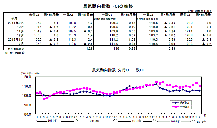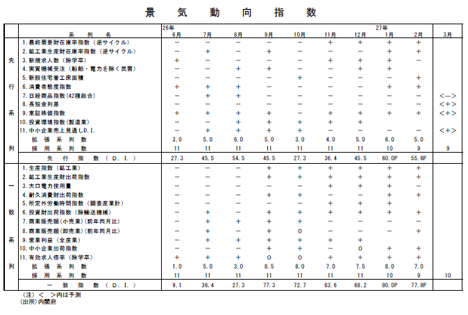 2月分景気動向指数(速報値)