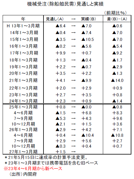 ●1~3月期は、2001年(平成13年)~09年(平成21年)の9年間では「実績」が「見通し」を下回ったが、10年(平成22年)~14年(平成26年)の5年間では12年・13年の2年間は下振れ、残りの3年では「実績」が「見通し」を上回った。15年(平成27年)も上振れそうだ。