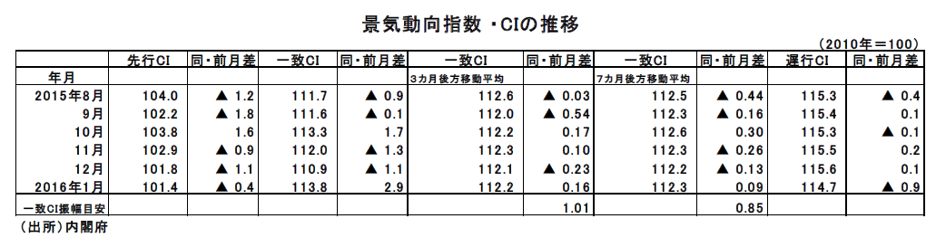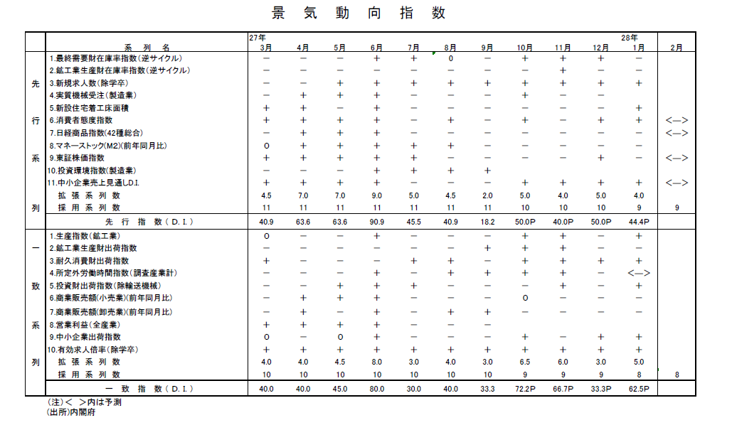 1月分景気動向指数(速報値)