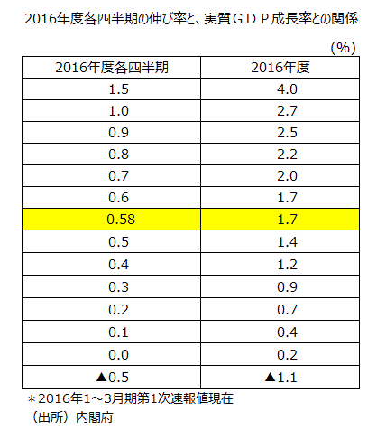 -政府経済見通し+1.7%達成に16年度各四半期・前期比年率+2.4%必要-