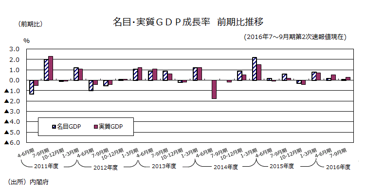―16年度残り2四半期・前期比年率▲0.9%で、内閣府年央試算+0.9%達成―