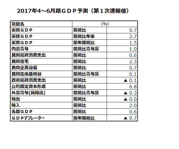 -4~6月期実質GDP第1次速報値・前期比は6四半期連続のプラス成長に-
