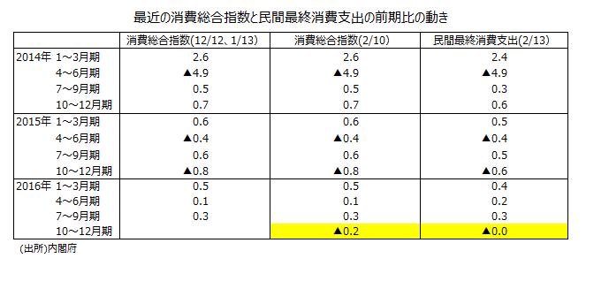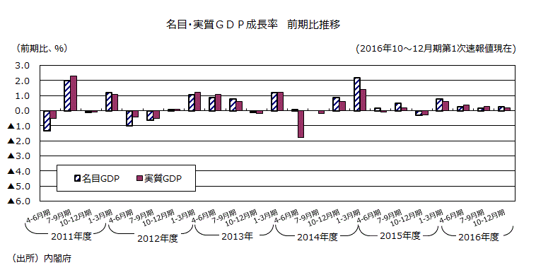 ―政府見通し16年度実績見込み+1.3%は1~3月期・前期比年率+1.2%で達成―