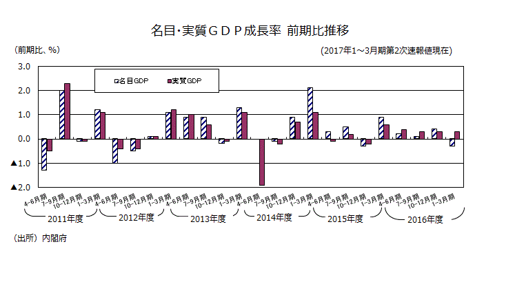 ―17年度は各四半期・前期比年率+1.7%で、政府見通し+1.5%を達成―