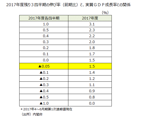 ―内閣府年央試算+1.5%は残り各四半期・前期比年率▲0.2%程度で達成―