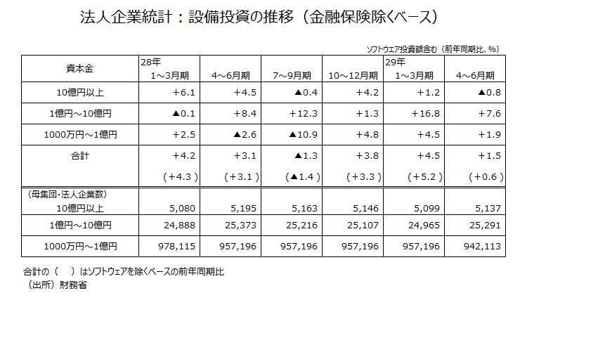 2017年4~6月期法人企業統計・設備投資などについて