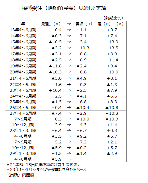 ―機械受注(除船電民需)4~6月期前期比は見通し▲5.9%を上回りそう―