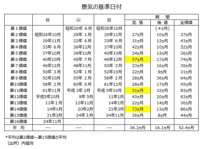 ●今年の11月8日に発表される9月分まで「改善」が続くと、65年11月から始まった「いざなぎ景気」の57カ月を抜き、景気拡張の長さは戦後単独第2位の58カ月となる。