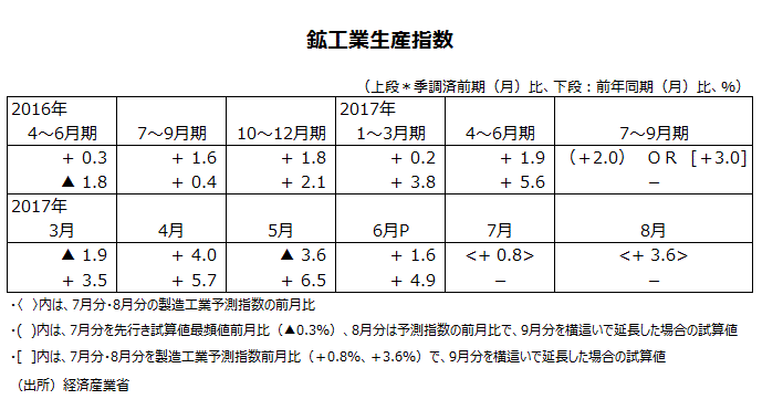 2017年6月分鉱工業生産指数・速報値について