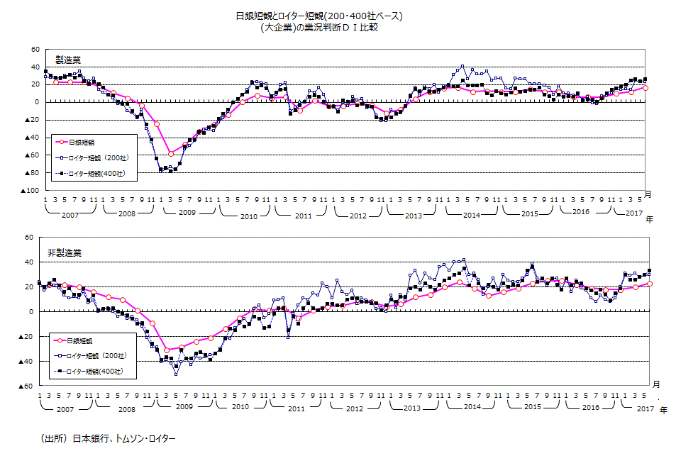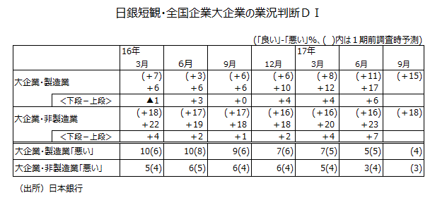 ―大企業・製造業・業況判断DI+17は3四半期連続改善、14年3月調査以来の水準―